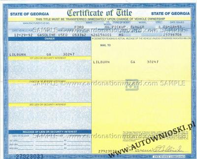 Certyfikat własności - Stan Georgia (Certificate of Title - State of Georgia)